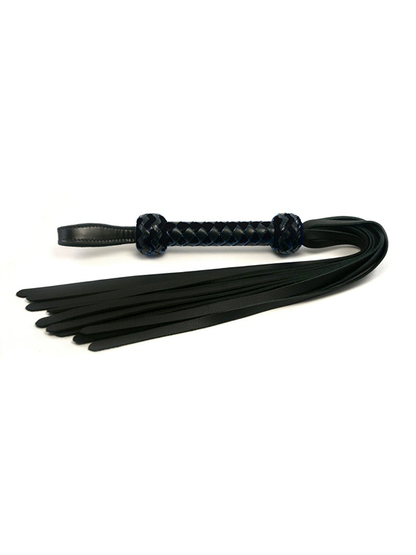 This flogger features a black braided handle, tails cut from high quality & incredibly supple full grain chrome tanned leather - and, cut in such a way that they will not stretch over time. The tail tips are finished with a mild point, which offers a little extra sting! The beautiful grade and finish of this leather means that it offers a delicious combination of thuddy percussion and sting.