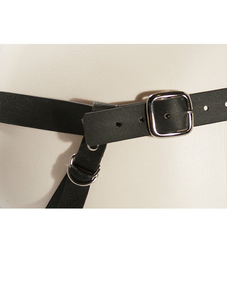 The harness straps that cup across the butt are secured with two d-rings. Because the vegan leather straps used are thinner than the straps used in the real leather Jaguar, they don't catch and stay properly in the d-rings; it kept on slipping the first time I used it to the point of unusability. I got around this somewhat by folding the straps on top of each other before feeding it through the d-rings (essentially, doubling it up). It did stay in place when I did this, but it cuts down on the length of strap available and makes it a bit more annoying to adjust and clean.