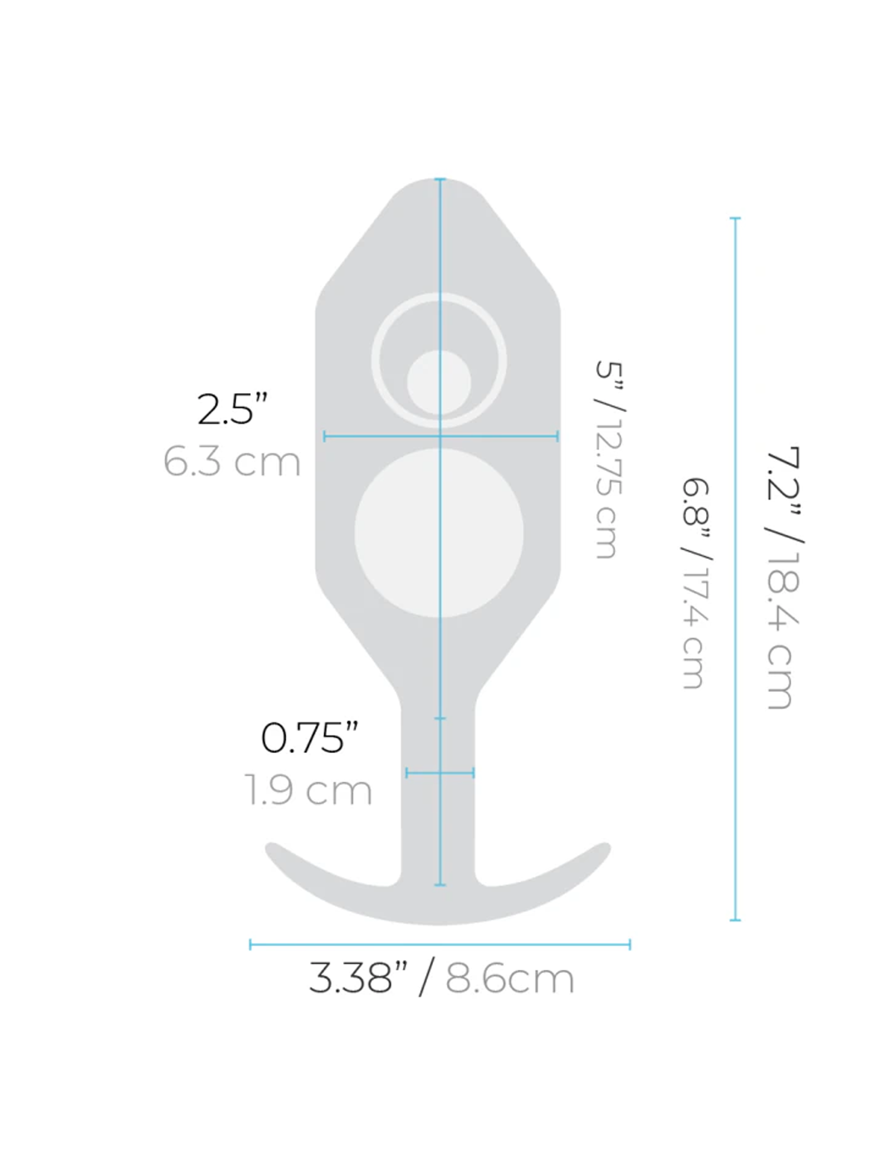 With the same smooth silicone exterior as the rest of the B-Vibe Snug Plugs, this non-vibrating butt plug features an ergonomic base for comfort in all positions and has two steel balls providing a significant weighty feeling. Designed for extended wear as desired.