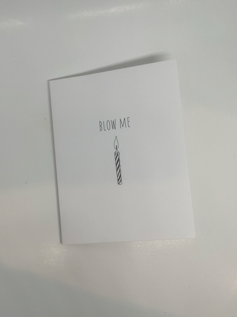 Blow Me Birthday Card by local artists and educator Rae Szereszweski