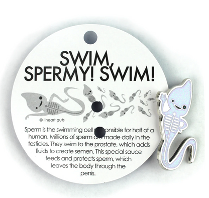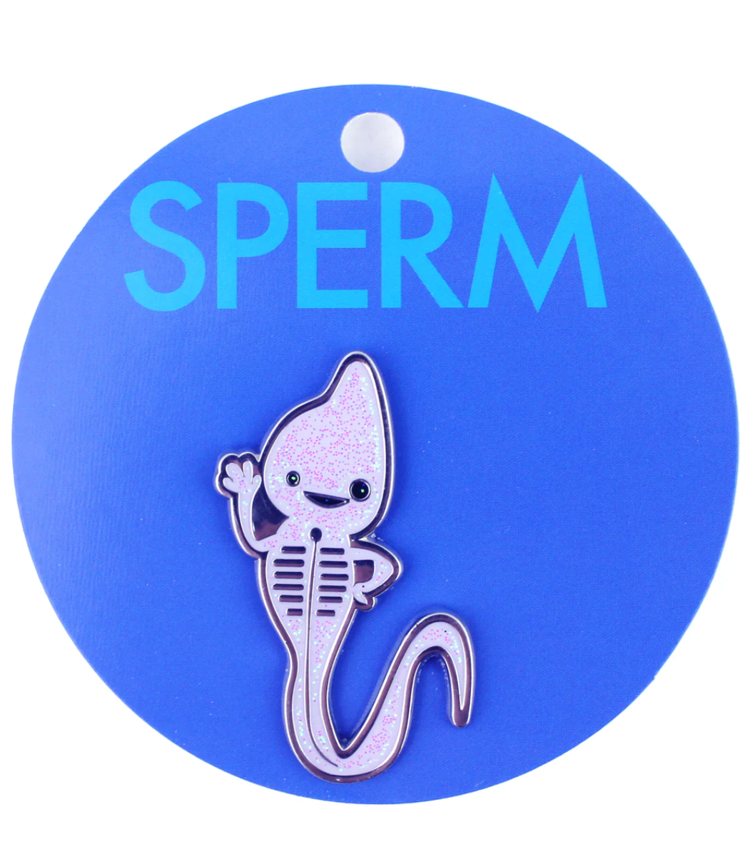 Our cute sperm sparkly enamel pin is so glittery and special. This glitter sperm cell enamel pin adds flair to just about anything. Great sperm donor pin, sperm bank, IVF clinic or fertility friend. This cute little 1.25" spermatozoa enamel pin comes packed on educational card and was made in China.