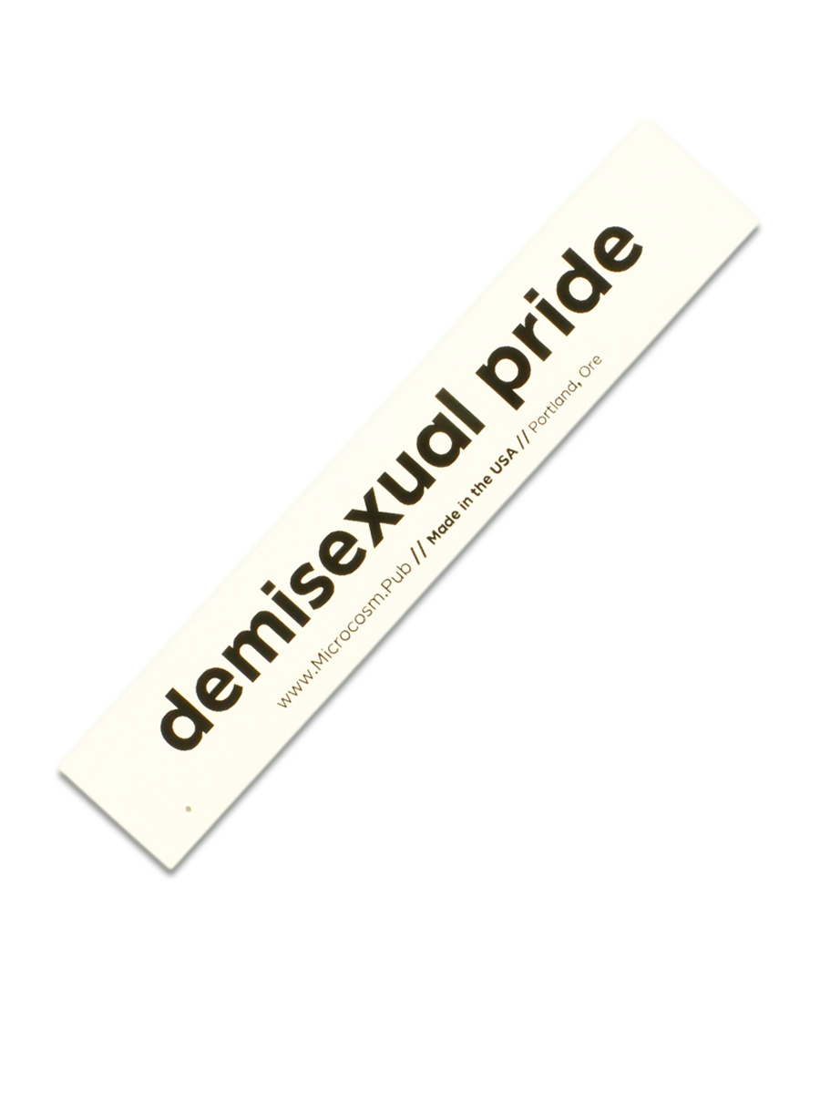 Let the world know you are demisexual and proud with this sticker! (Sturdy vinyl sticker with black print on a white background. Reads: “demisexual pride”)