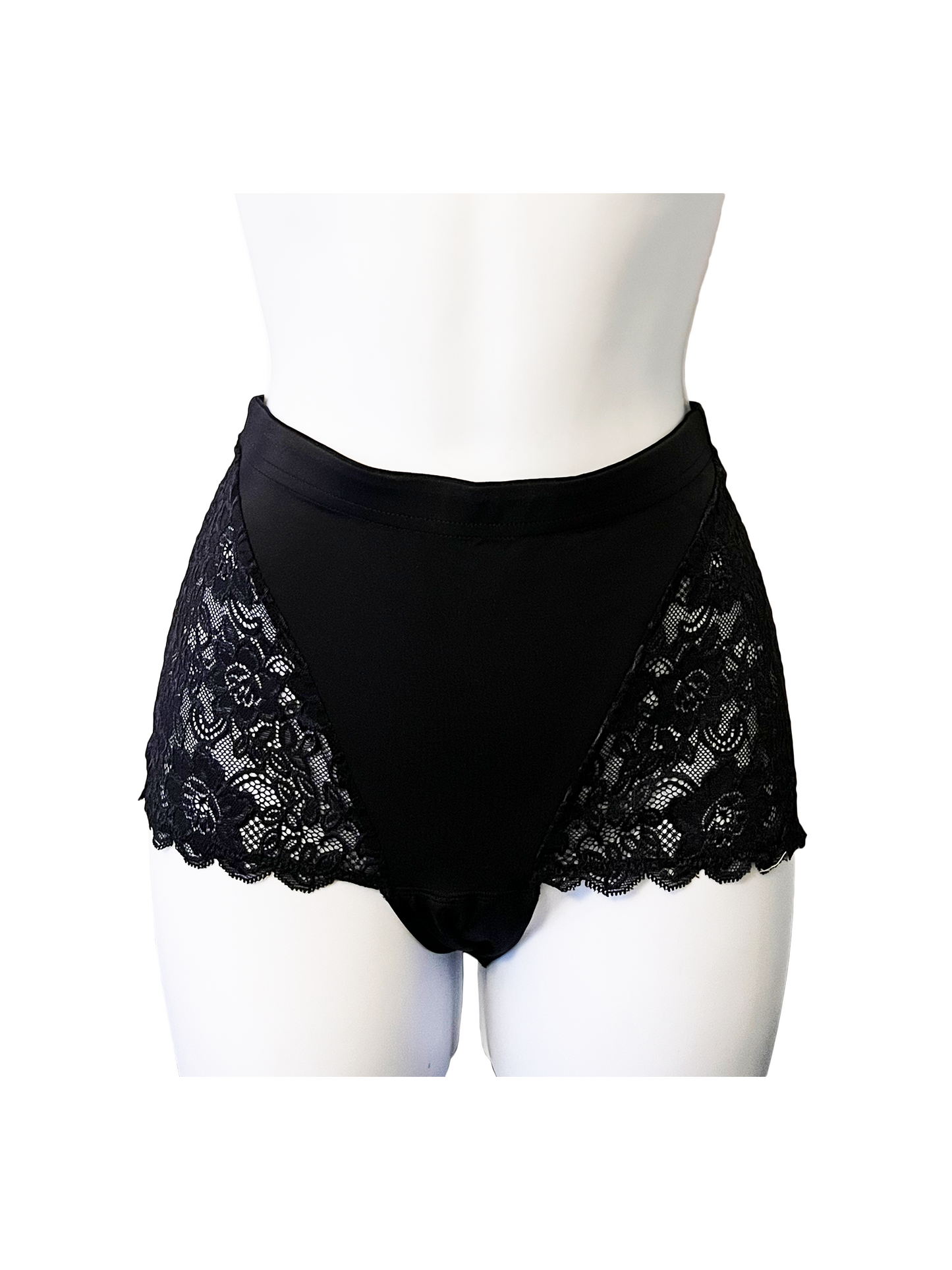 This gorgeous lacy Elila Stretch Cheeky Gaff brings some style to tucking! With a stretchy microfibre front panel for a secure fit, this gaff also provides some "shapewear" functionality to everyday tucking. With less support than some of our other gaffs, some folks wear these underwear over a classic gaff for an even more secure tuck!