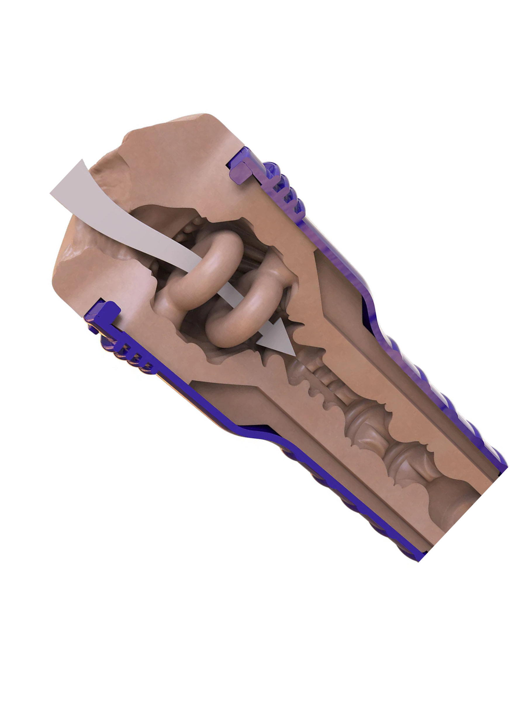 While the sleeve is made of Fleshlight's patented soft-and-squishy elastomer material, the Fleshlight Boost Bang comes with two firm "Turbo Tech” floating rings upon entry, ensuring a perfectly snug grip throughout. After penetrating this pleasure-inducing feature, the remainder of the sleeve features a highly textured, tight corridor consisting of ribbed rings and floating discs expertly crafted to stimulate through the whole length of the toy.