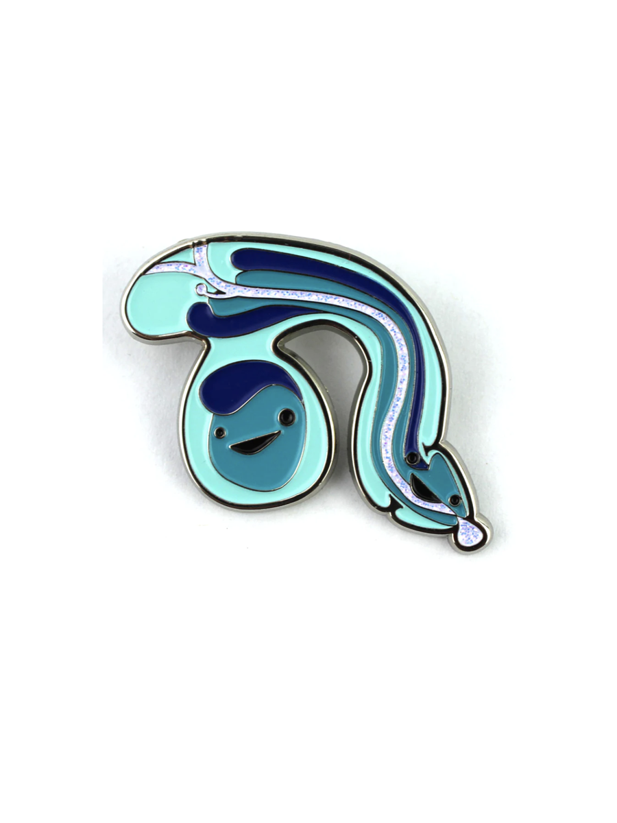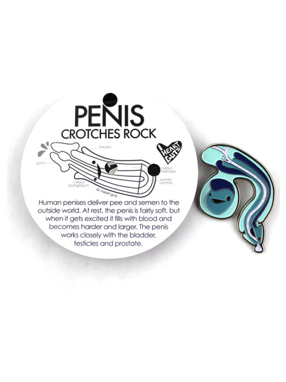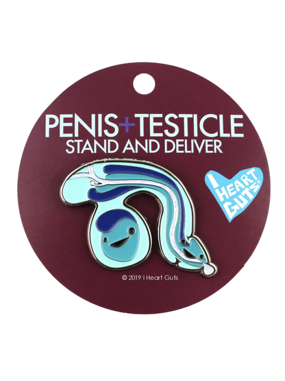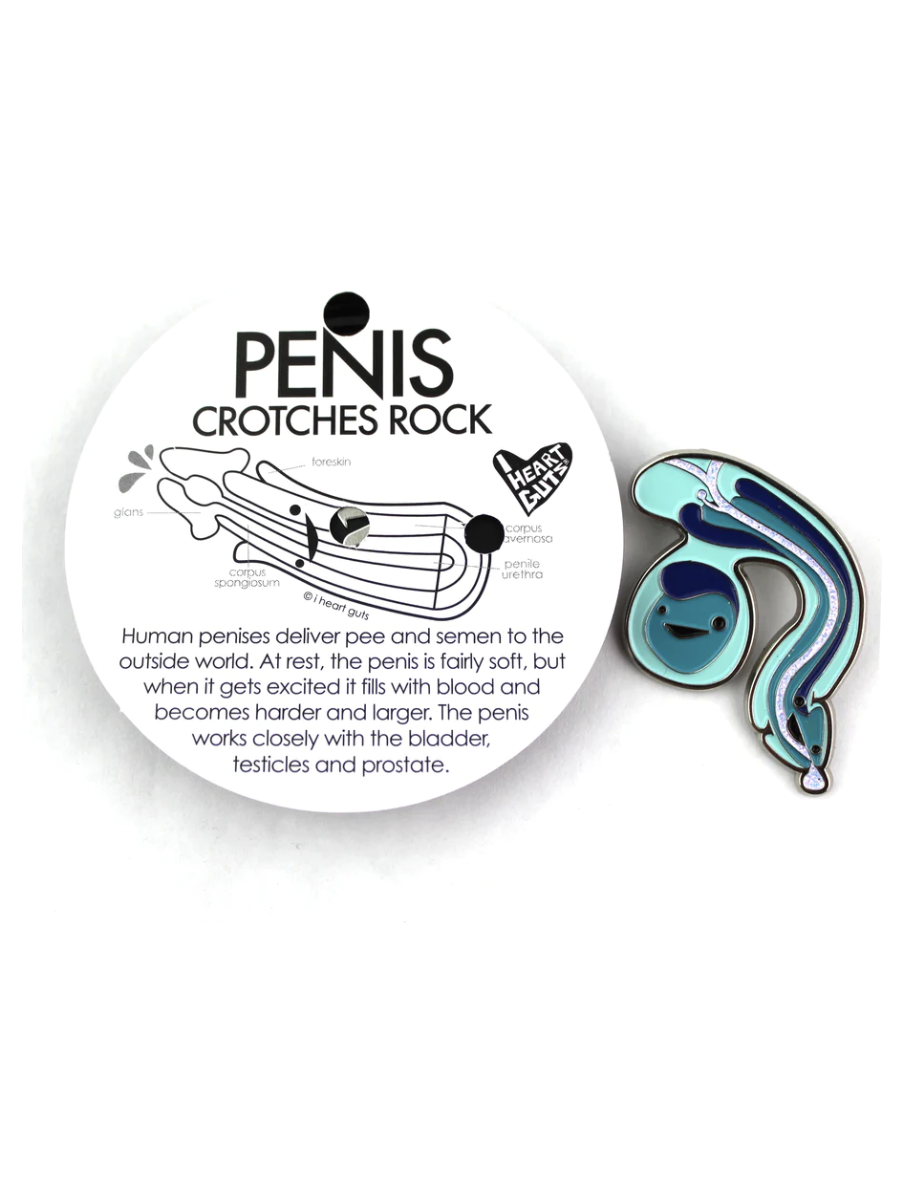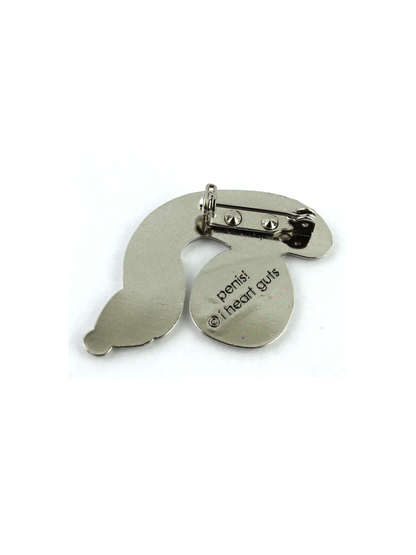 This sparkly I Heart Guts Penis & Testicle Pin shows the amazing anatomy of the penis, complete with a glittery urethra.