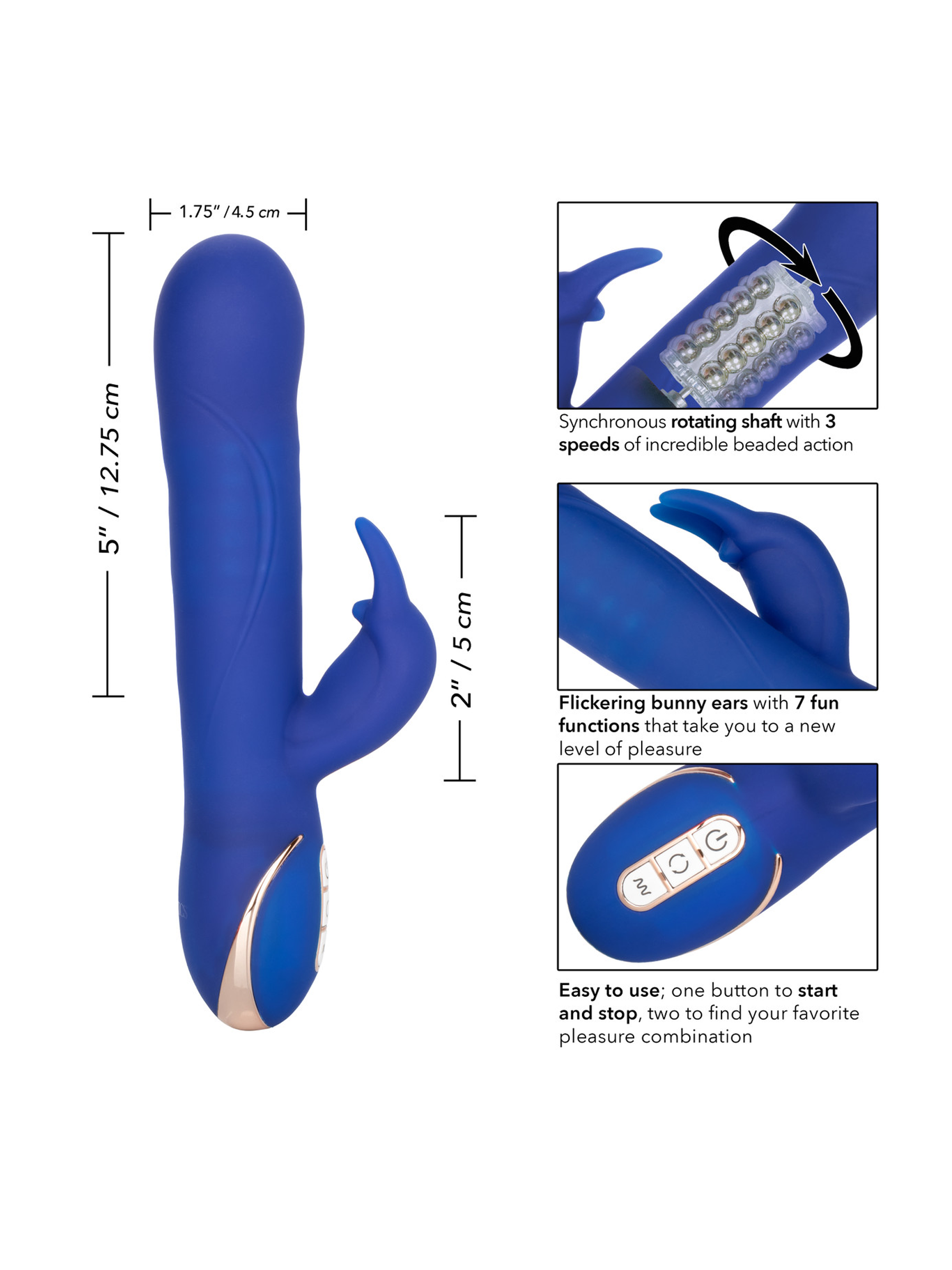 To maximize and customize the sensation, the Jack Rabbit Rotating Beaded Rabbit has a easy-touch 3-button control pad lets you independently operate the plethora of vibration and tip rotation options.