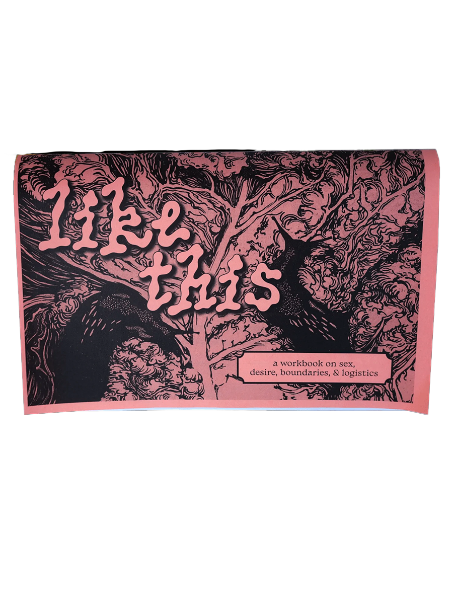 A workbook zine designed to help people to reflect on and share what they need and want sexually, with a focus on navigating sex & kink in a way that's informed by transness, trauma, and disability justice. A friendly, nonjudgmental focus on exploring and expressing access needs and other potentially complicated aspects of sex and having a body, is woven throughout.
