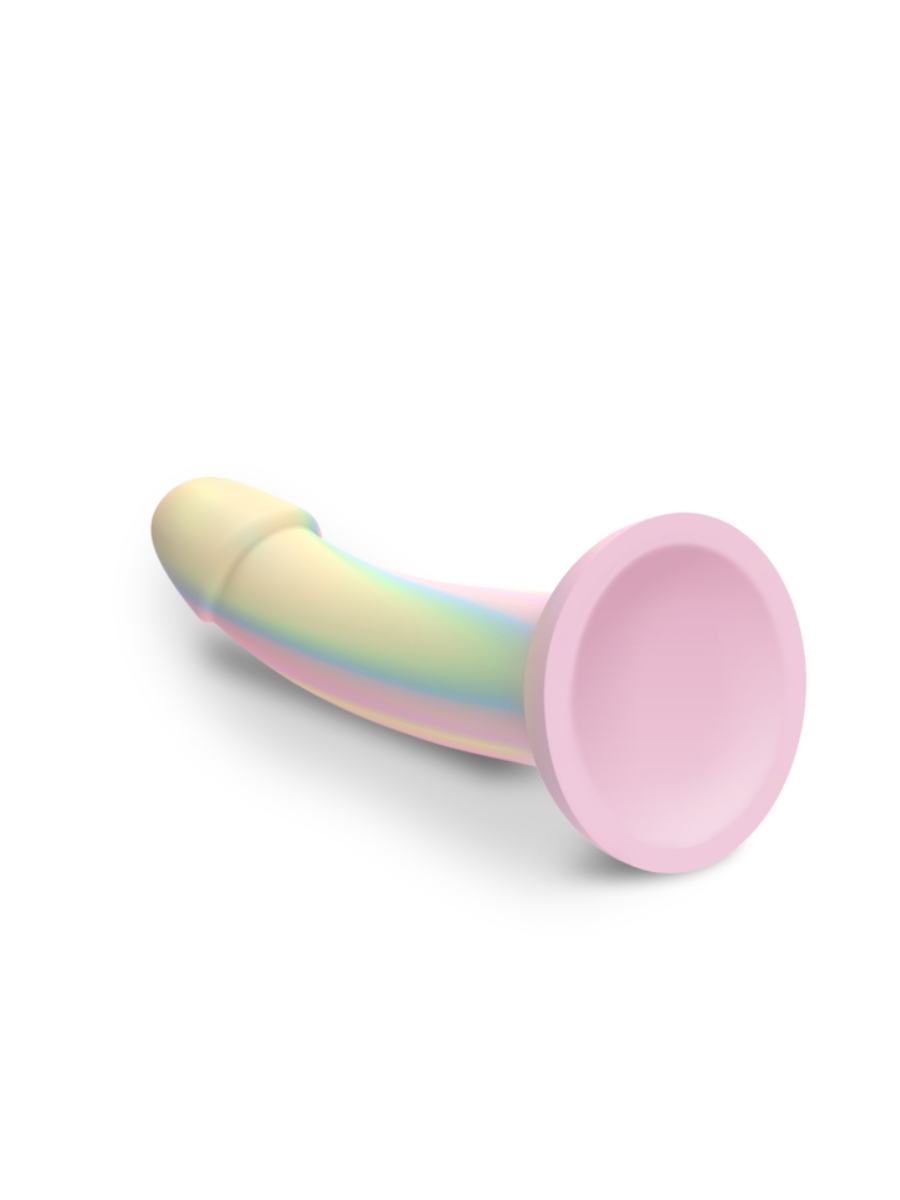 The LoveToLove Dildolls Silicone Dildo has a realistic form with fabulously whimsical design and colours. The "Fantasia" colour option is like a candy rainbow with the colours streaming vertically from base to top featuring pastel yellow, pink, and blue hues. The "Utopia" colour is light blue at the base transforming slowly into pink at the tip to give it this gorgeous ombre through the whole toy.