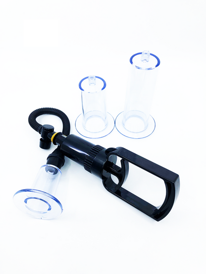 The trio of glass suction chambers feel nice, although as other reviewers noted the flanged edges may be awkward if used between the legs. The pump hose nozzle is also compatible with other pumping products I own which is nice. If you're used to using other 'squeezing-bulb' pumps, be aware this pump mechanism is STRONG. Be gentle with yourself and enjoy!
