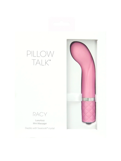 Featuring a firm end and flexible shaft, the Pillow Talk Racy Vibe is coated in non-porous, body-safe, and easy-to-clean silicone. Designed with a generous curve, the thick tip of this toy is a stellar design for those that are curious about internal vibrations or ejaculation. The textured handle makes holding this toy pretty easy, even if it's in a kinda slippery situation!