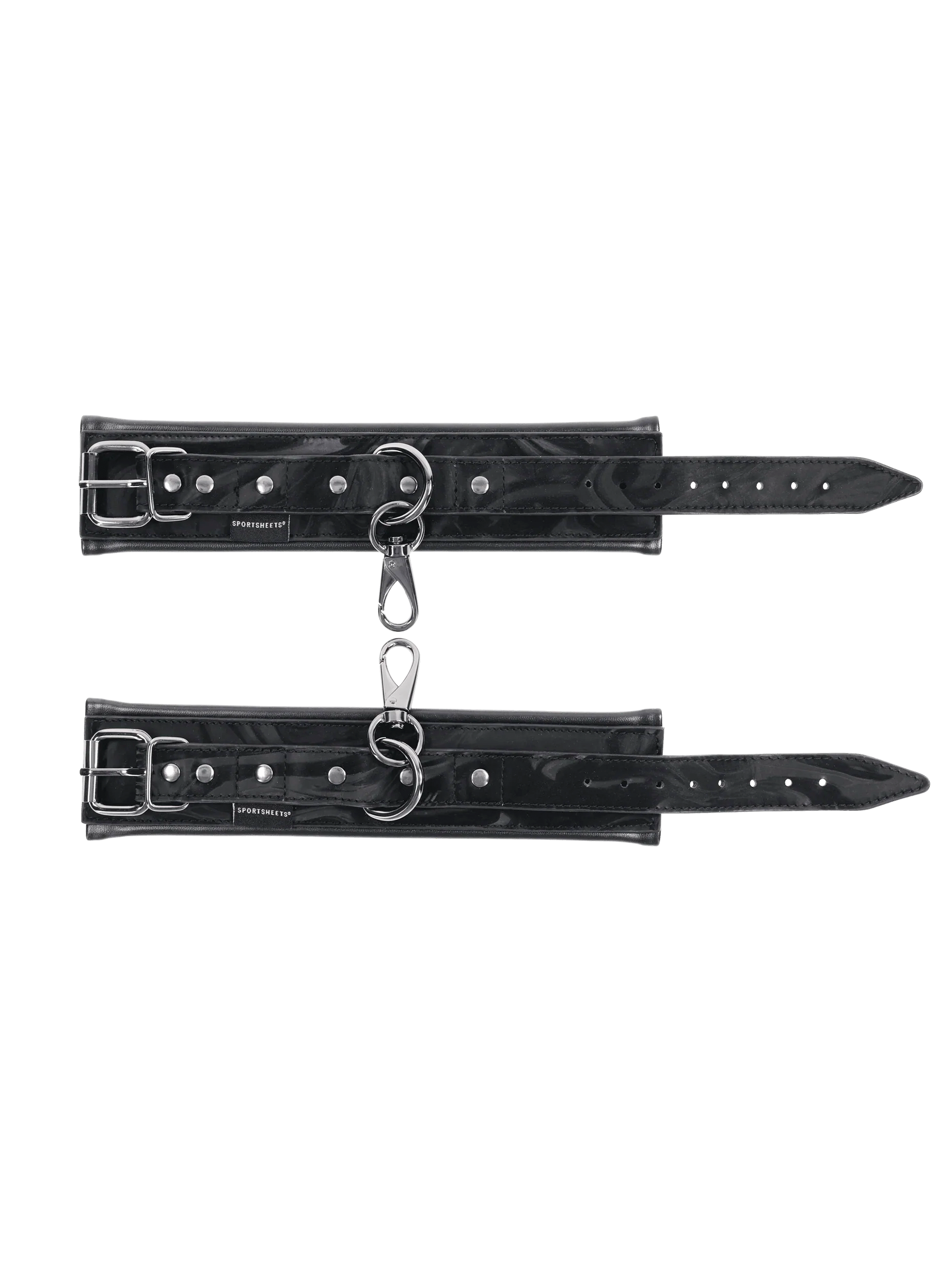 These cuffs are adjustable from up to 9.5" and the spring loaded push-gate hardware adds ease when attaching the cuffs to each other or another hard point.