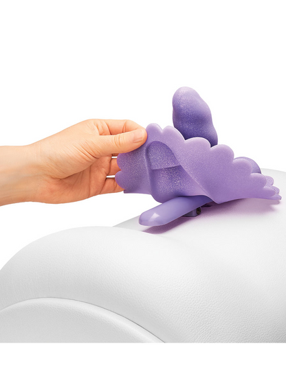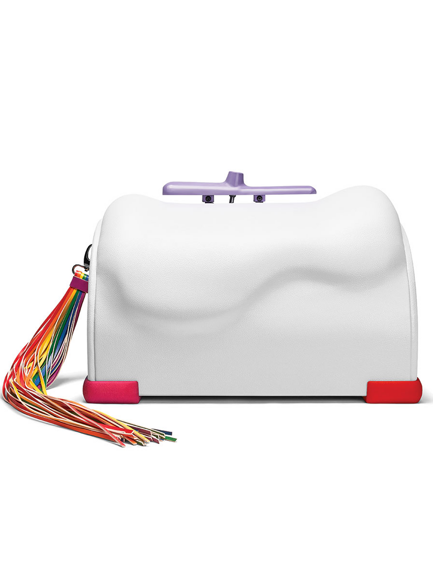 With a reinforced handle and the cruelty-free white vegan leather cover, you'll delight in the whimsical rainbow tail which when detached, magically transforms into a flogger!