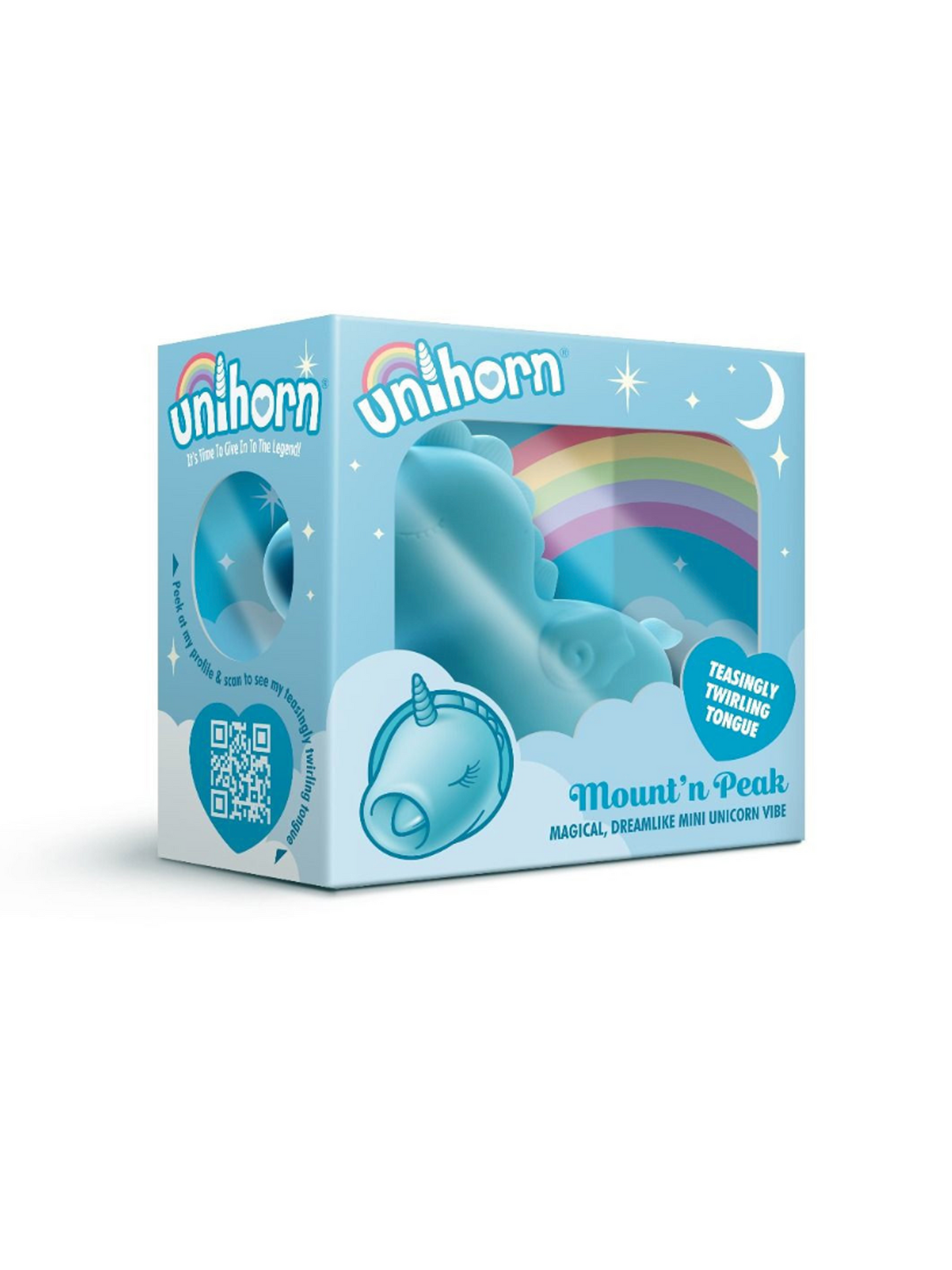 Fully waterproof, the Unihorn Mount'n Peak is a fun and friendly rechargeable motion toy made of soft silicone for easy cleanup. The body-safe materials and ridiculously cute design make this an irresistable addition to anyone's sex toy collection. Collect all three Unihorns and make it a set!