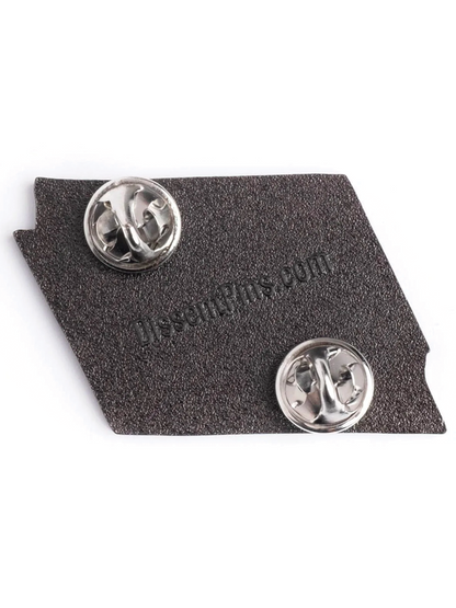 This pin is 2" wide and has two pins on the back to keep it securely fastened to you at all times.